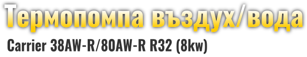 Термопомпата Carrier 38AW-R/80AW-R R32 (8kw) се състои от два компонента: външно тяло 38AW080H7R и хидравличен модул 80AWX100M3BR.