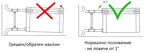 • Наклонът на тръбите в системата за гравитационно отопление е по-малък от 5 см на линеен метър, или от неправилно изчисление при подаване и консумация на топлата вода възниква стагнация на водата, придружена от натрупване на въздух.