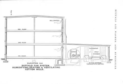Компанията Buffalo Forge продава „Апарата за третиране на въздух“ на Carrier на Chronicle Cotton Mills в Белмонт, Северна Каролина, и го прилага към вентилационната система на мелницата. Това е била първата промишлена система за овлажняване на „централна станция“.