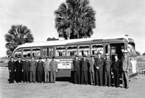 Сан Антонио, Тексас, рекламира „първия градски автобус с климатик в света“ през 1946 г.