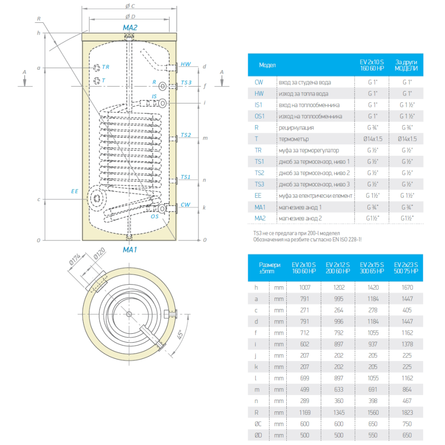 160 литров бoйлер с една двойна серпентина с увеличена площ.