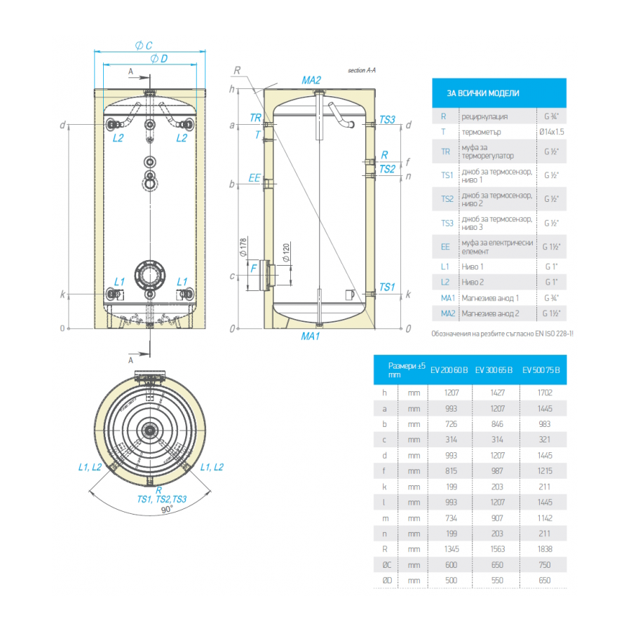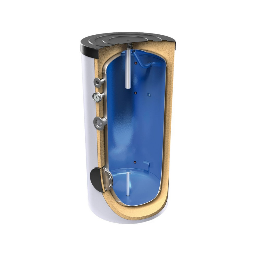 Eмайлиран подовостоящ бойлер за битова гореща вода с възможност да подсигури потреблението на едно и многофамилни жилищни сгради.
