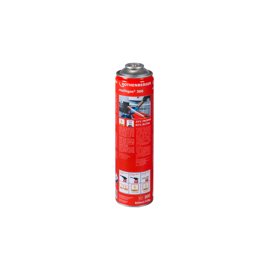 Rothenberger флакон с газ за еднократна употреба Мултигаз 300 За всички видове горелки за спояване на Ротенбергер и за горелки с подходящо присъединяване по EN417. Възможност за ползване на един флакон за работа с няколко горелки благодарение на обезопасеното автоматично затваряне. Фино рафинирани газове за продължителна работа без прекъсвания, безвредни за озона, несъдържащи флуорхлорвъглеводород, тествани от TUV.