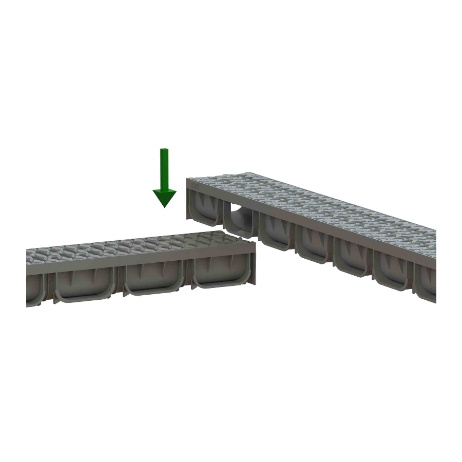 Решетката е здраво закрепена към отводнителя с помощта на Click-система, която не изисква използването на винтове, които се отстраняват лесно, за да почистите пластмасовата тава от листа и мръсотия, попаднали в нея.