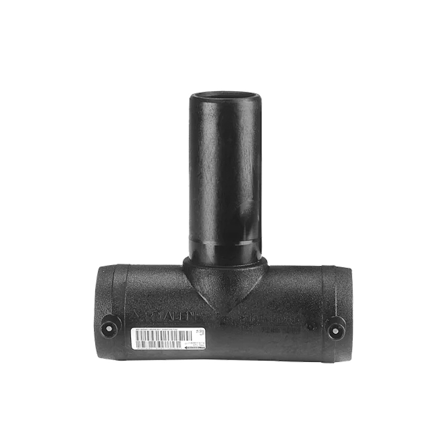 Електрозаваряем PE Тройник с открит проводник на загряващия елемент за оптимален пренос на топлината и към 3-те страни , голяма дълбочина на монтаж, широки зони на заваряване, хладни зони в двата края и средата, предпазващи от изтичане на разтопен материал. Работа без допълнителни фиксиращи приспособления. Правата част се заварява наведнъж. Общо са необходими 2 заварки.