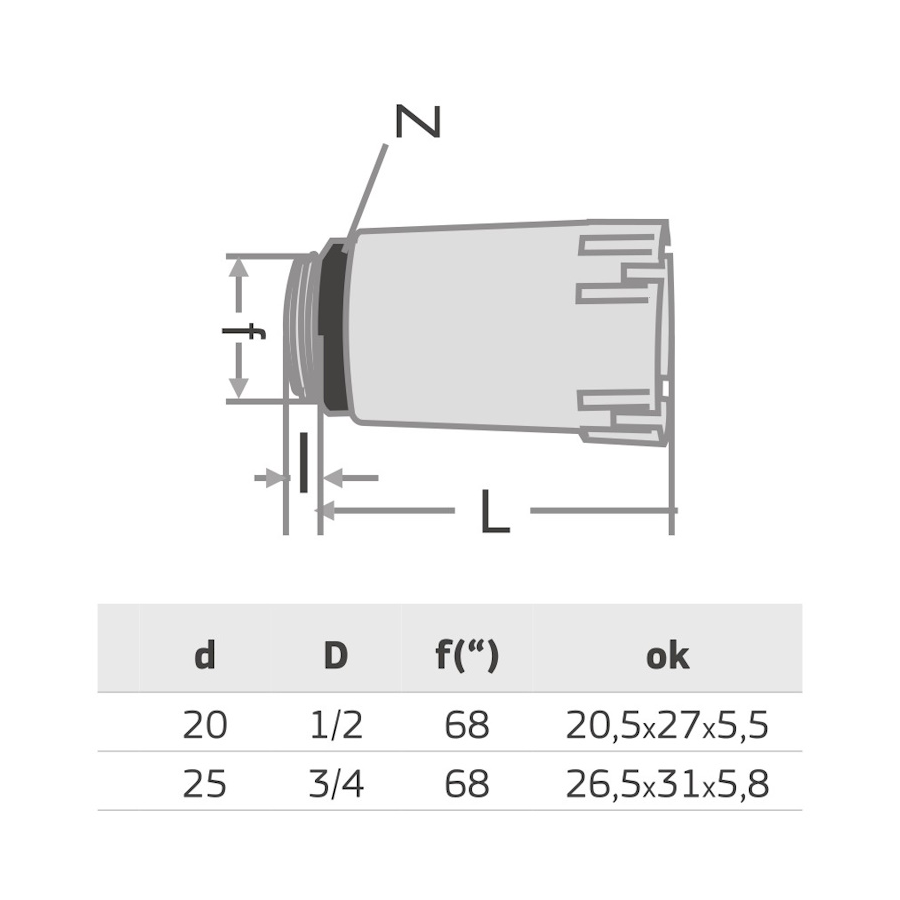 PPR ТАПА ДЪЛГА С ПЛАСТМАСОВА РЕЗБА 1/2“ ЧЕРВЕНА