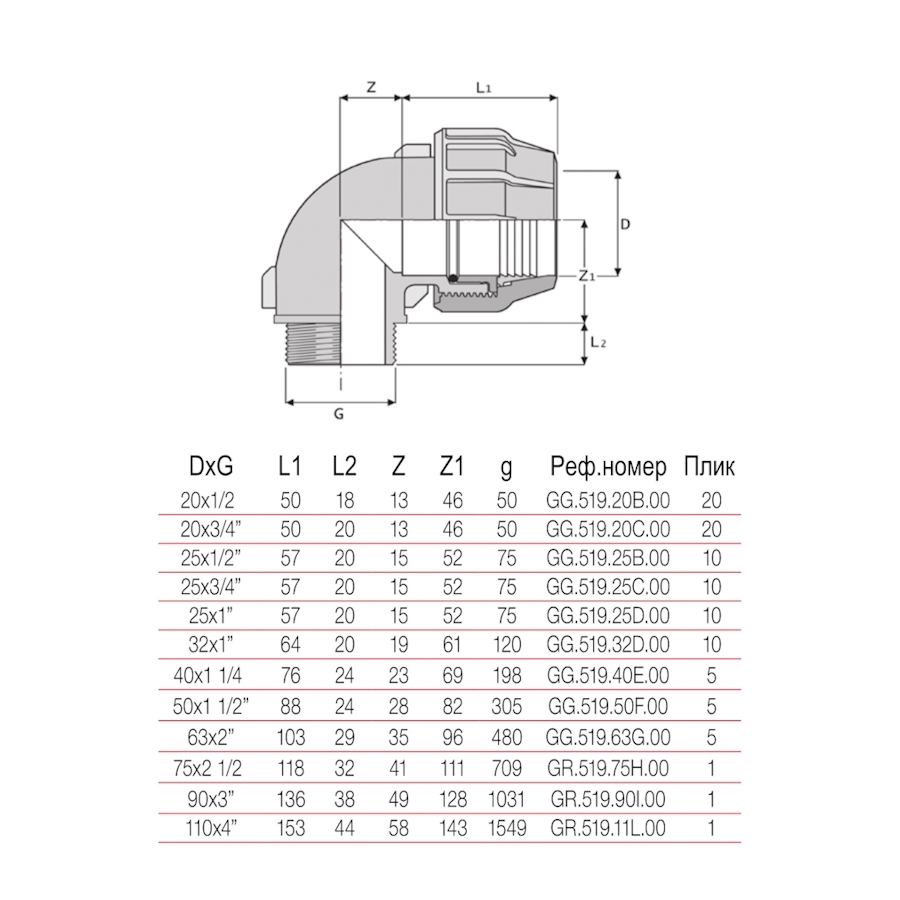 Корпус и гайка от полипропиленов черен ко-полимер, заключващ пръстен от бяла POM смола, О-пръстен от NBR, усилващ пръстен от AISI 430. Метални фланци (арт. 520) поцинковано Fe 360.