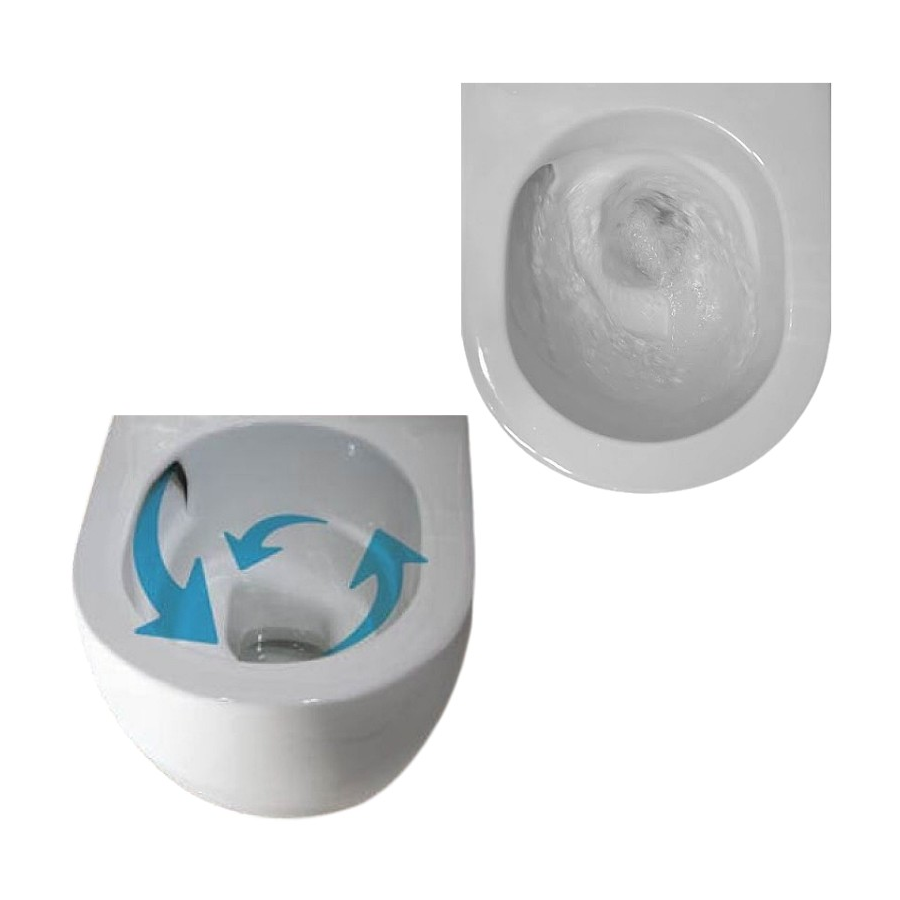 - Технологията за турбо промиване напълно предотвратява задържането на бактерии и мръсотия под вътрешния ръб