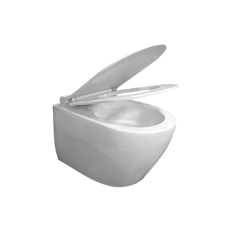 Висяща тоалетна Fluenta Turbo с елегантен и модерен дизайн, и капак със забавено падане.